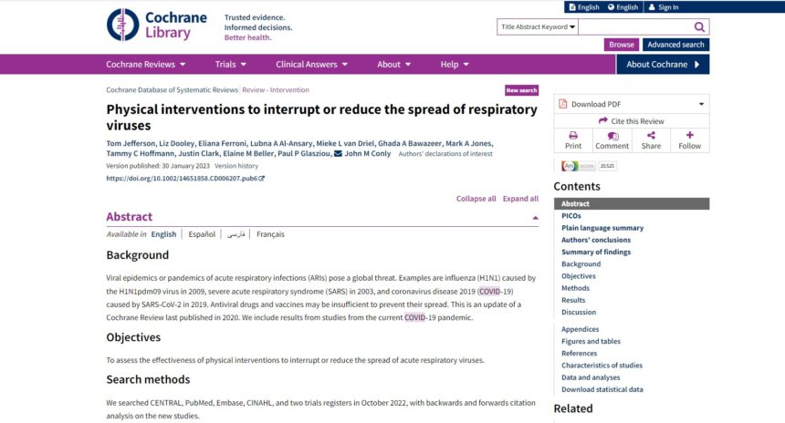Tıp alanında kanıta dayalı yapılmış araştırmaları içeren Cochrane Library, yüz maskelerinin Kovid ve influenza gibi virüslere karşı hiçbir koruyuculuğunun olmadığını ortaya koyan bir araştırmanın sonuçlarını yayınladı.
